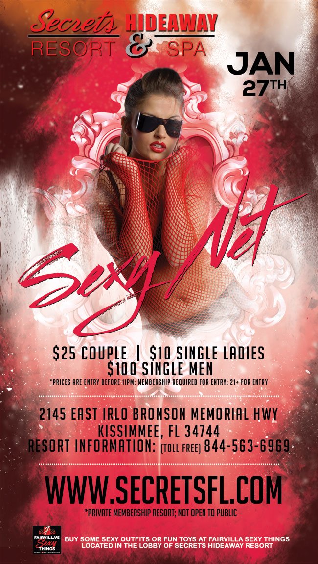 Tonight, Secrets Events is proud to present one of our sexiest themes – Sexy Net. This party is about SKIN and all the sexiest fabrics we can see on your bodies. Net wear is fun whether it’s on your legs or wrapped around your body in a sexy dress or top. Fishnets are always sexy, but tonight with all of the ladies running around in barely there “clothing”, it’s going to get erotic fast! Join us for another hot, hot, steamy night.