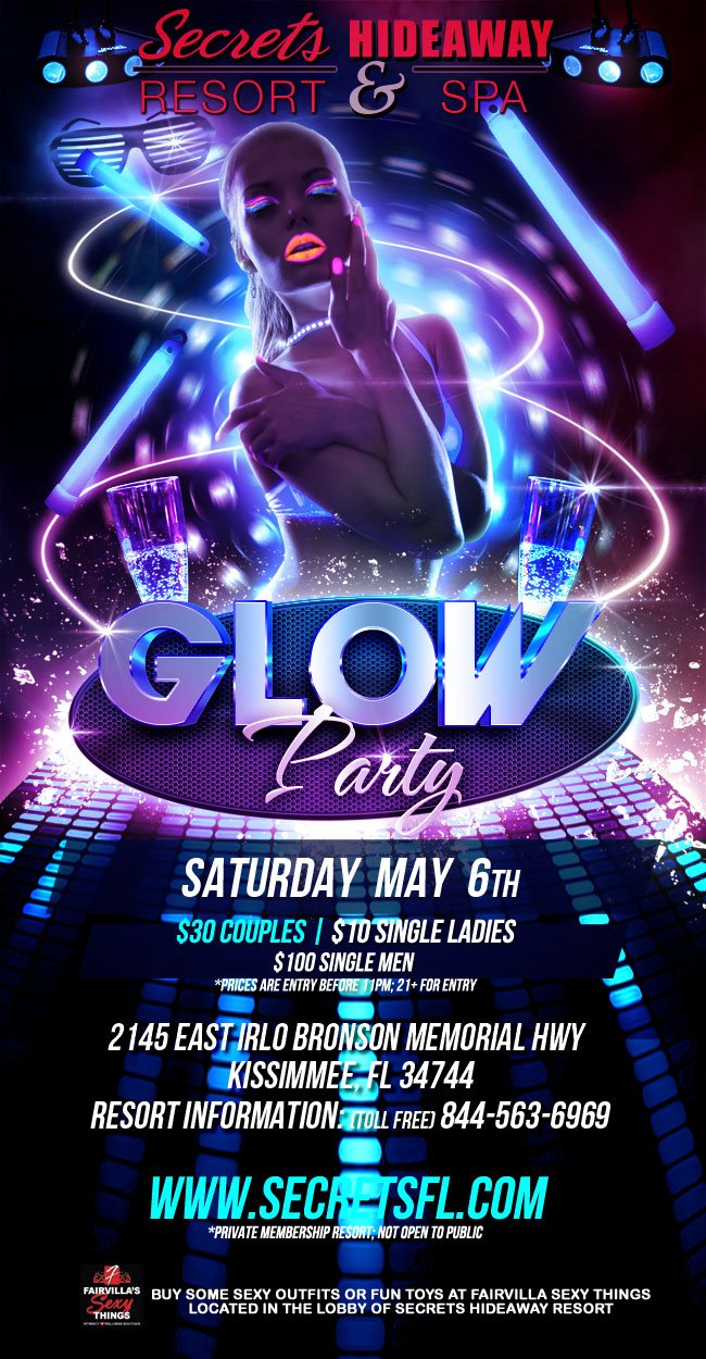Are YOU ready to stand out? Our black light parties combine our premium nightclub experience with an added visual element. We also have 2 birthdays we are celebrating tonight - Peter from AAHZ Party and Kat!! Join Secrets Hideaway for one of our best themed parties. That's right our fantastic GLOW Party!!! Secrets Hideaway is hosting a unique party that fuses together music, special effects, hot people and glowing colors. Step into a mind blowing combination which creates interaction, excitement and enjoyment from start to finish. Our spectacular party has a dramatic impact on the crowd, as they go absolutely crazy!!!! Our black light parties get BIGGER every time we throw one! Escape into an immersive environment of GLOW imagery. Ladies and gentlemen we want you to wear as much florescent swag as physically possible. Feel free to bring any glow materials you have to this outstanding event.