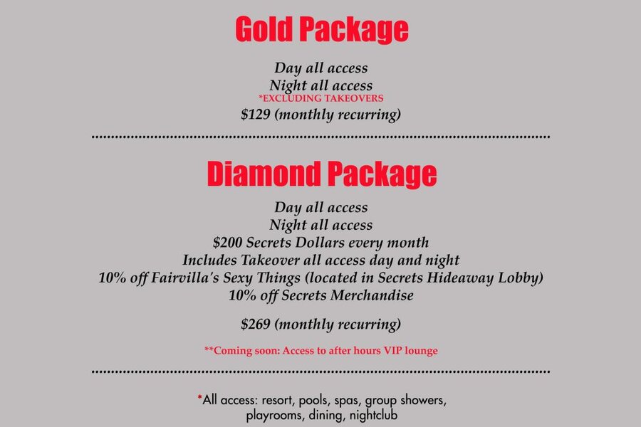 All the parties are located at Secrets Hideaway Resort & Spa®. For reservations: Visit our reservations page Click here for Reservations , call 844-563-6969 or book by clicking the Red "Book a Room" button at the top of each event page.