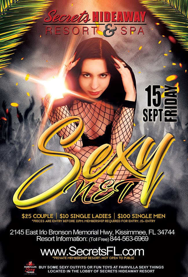 Are you ready as Secrets Hideaway throws ONE of its Sexiest parties… our Sexy Net Party! We encourage the ladies to dress as sexy as they want in Net and more. This party is about SKIN and all the sexiest fabrics we can see on your bodies. Net wear is fun whether it’s on your legs or wrapped around your body in a sexy dress or top. Fishnets are always sexy, but tonight with all of the ladies running around in barely there “clothing”, it’s going to get HOT fast! This is the event to let it all hang out. Lady Savannah’s Dungeon is available from 10pm-2am for a stimulating combination of Lifestyle and Kink.