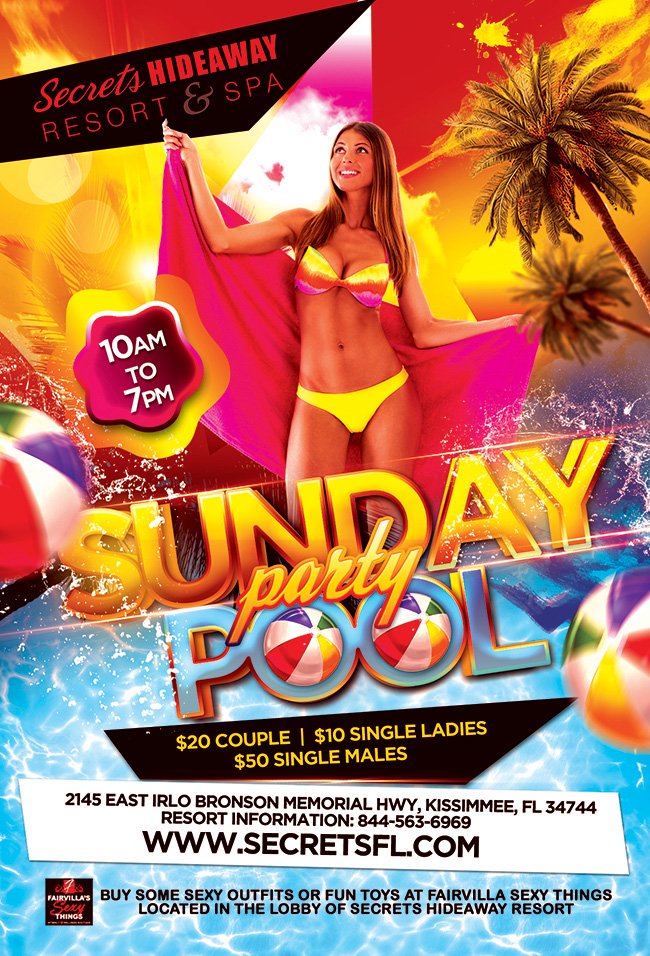 All the parties are located at Secrets Hideaway Resort & Spa®. For reservations: Visit our reservations page Click here for Reservations , call 844-563-6969 or book by clicking the Red "Book a Room" button at the top of each event page.