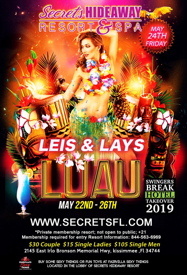 Nothing says summer like bright, colorful leis, and nothing says Secrets like getting laid while wearing one! Join us for our Swingers Break Takeover and celebrate sexy bikinis, hot bodies, and delicious boat drinks! Tonight, bring your beach gear onto the dance floor as we celebrate the start of summer like only Club Secret can! Summer is here and we are ready to get hot and bothered! So, grab a beach-inspired cocktail and join your sexiest friends on the dance floor as we heat things up with the wildest hotel takeover in Florida!
