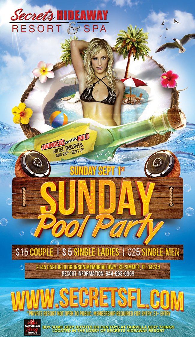 There’s no Sunday Funday like a Swinger’s Sunday Funday so make your plans now to hang with us pool side all day Sunday for the hottest pool party anywhere! Our swinger friends have Gone Wild and we are all along for the ride! So, show up, hang out, and get ready to go WILD at Secrets Hideaway Resort and Spa!