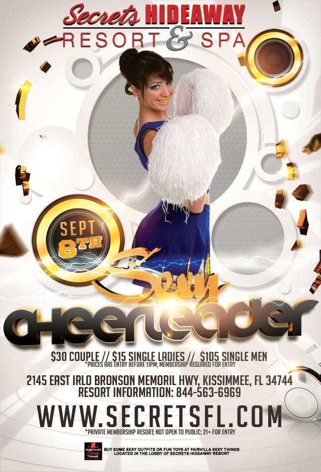 Give us a S, give us an E …. Should we bring in the X next? The cheers lead the way tonight at Secrets Hideaway Resort and Spa and we are ready to spell out a sexy good time. The game is won and the celebration is on! We are ready to flood the dance floor of Club Secret with the sexiest and naughtiest cheerleaders around. So grab your pom-poms and get ready for the very best in Lifestyle entertainment!