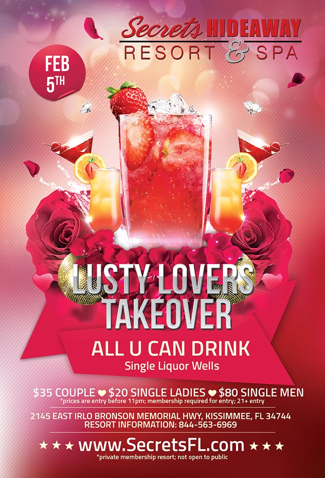 “All U Can Drink Wednesday – Lusty Lovers Valentine Takeover”