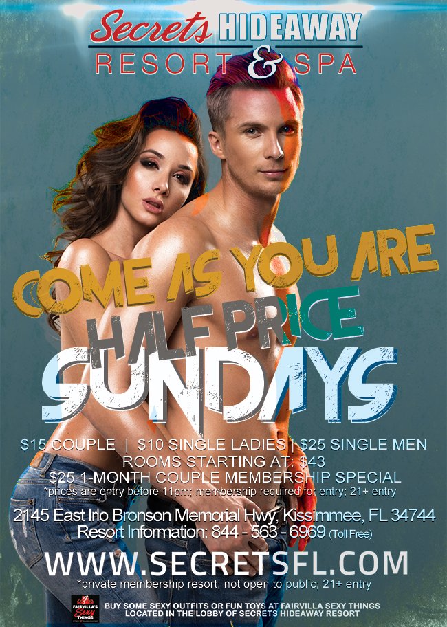 All the parties are located at Secrets Hideaway Resort & Spa®. For reservations: Visit our reservations page Click here for Reservations , call 844-563-6969 or book by clicking the Red "Book a Room" button at the top of each event page.