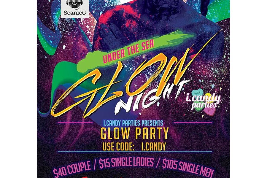 Your voyage Under the Sea begins at 6pm with happy hour drink specials until 9pm. Get your fins wet in one of our two group hot tubs, or take a splash in our heated conversation pool. As night sets in, the glow begins! Our outdoor DJ will have you shaking your tail under the black-lights as the sexiest merfolk frolic and play beneath the stars. When you’re ready to take the plunge, head inside and check out our brand-new Fantasy BDSM Dungeon! Our Dungeon staff is ready to guide you, so grab a playmate and explore uncharted waters in total safety and comfort. With over 8000 sq ft of play areas, including private rooms and group play-space, Secrets truly has something for everyone & every fish! So swim out tonight and get ready to shine as iCandy hosts the first ever completely outdoor glow party, only at Secrets Hideaway Resort & Spa!
