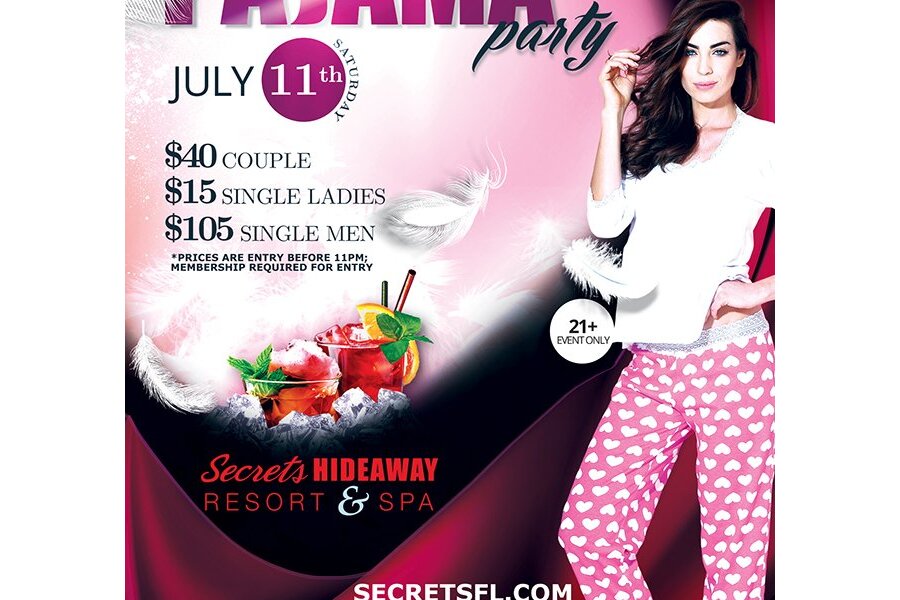 It’s a PJ party tonight at Secrets Hideaway Resort & Spa, and we want to see your most playful nighties! The party goes all night long and bedtime is postponed so come dressed to impress as you rock the dance floor! Work up a sweat on one of 5 dance poles then get ready to strip down in the playrooms for late-night naughtiness. From silky robes to fluffy mules, we want to see your most jaw-dropping fashions as Club Secret celebrates the most intimate aspect of the Lifestyle - PJ Parties!