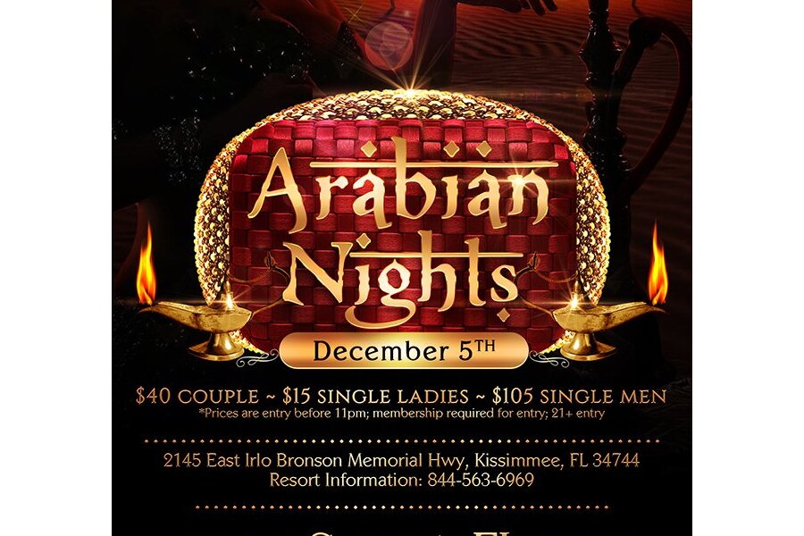 Tonight, we take flight on a carpet, and whisk you away to a land where desert dunes and ancient mysteries rule. An exotic night filled with belly dancers and genies. Ali Baba and his forty thieves will say, “Open Sesame,” and allow you to enter the hidden cave of riches that is Secrets Hideaway for a night of Arabian Magic!