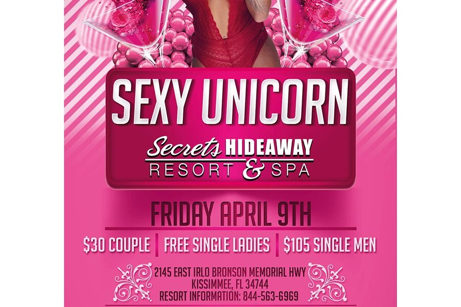 Tonight, is the magical night of Unicorns at Secrets Hideaway. Single ladies get in FREE!! Be a Unicorn or bring a Unicorn. Experience a night like no other. Can you find the ever elusive and mysterious Unicorn? At Secrets Hideaway, we just bet you can.