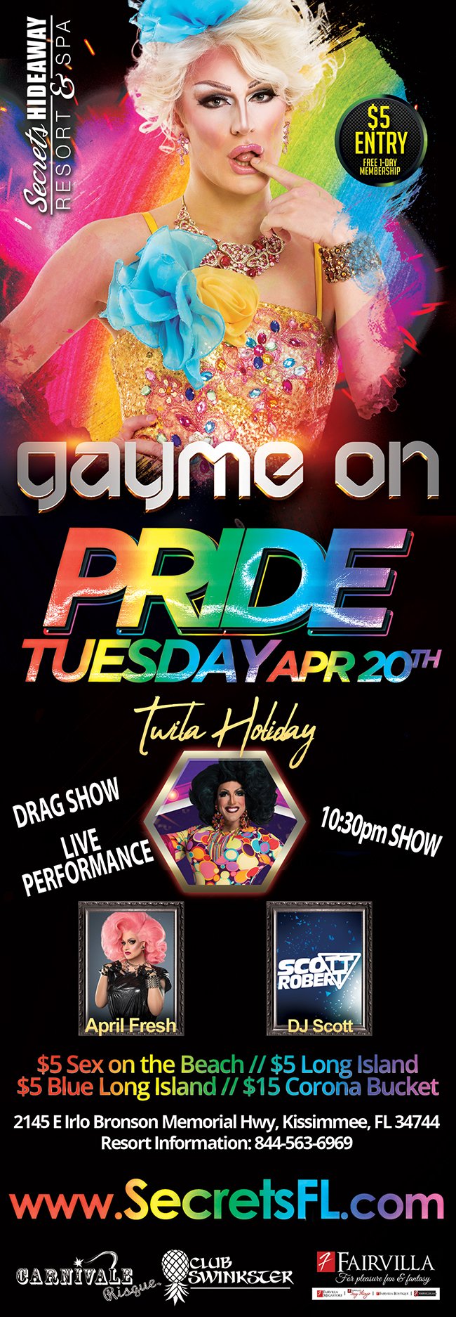 Pride Tuesdays is not only the night to slay but a night to play! This is Secret hideaways 1st ever drag game show with special guest performances from local drag talent. The comedy queens are here and ready to give you a show you'll never forget. So get those coins and grabs some friends cause we are going to have a ball or two. Join us and enjoy this electrically charged night with the stunningly energetic and a Drag Show at 10:30pm The night will be filled with erotic music, dancing, and DJ Rosa will be spinning today’s top hits. We will have $5 Sex on the beach, $5 Long Island, $5 Blue Long Island, and $15 Corona Buckets all night long.