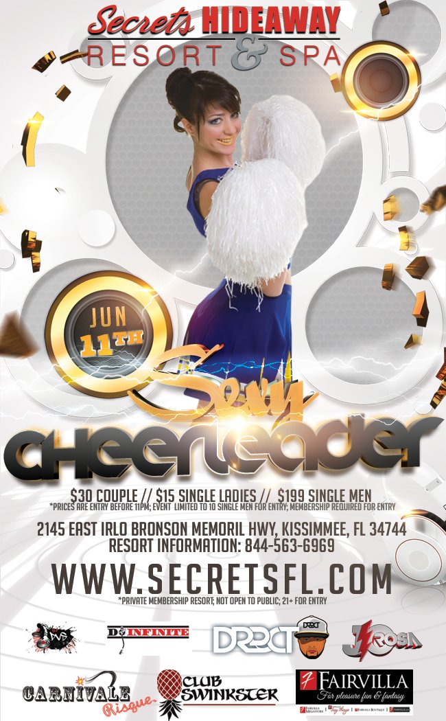 Give us a S, give us an E …. Should we bring in the X next? The cheers lead the way tonight at Secrets Hideaway and we are ready to spell out a sexy good time. The game is won and the celebration is on! We are ready to flood the dance floor of Club Secret with the sexiest and naughtiest cheerleaders around. So grab your pom-poms and get ready for the very best in Lifestyle entertainment!