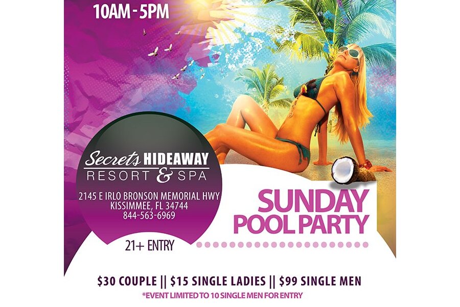 Let loose and spend the evening with us - reduced room rates on Sunday evenings make splurging on an extra day an epic way to end your sexiest weekends. With two tiki bars serving your favorite cocktails and a full lunch menu, you’ll have plenty to keep you fueled as you spend Sunday Funday at the sexiest clothing-optional pool party in Kissimmee!