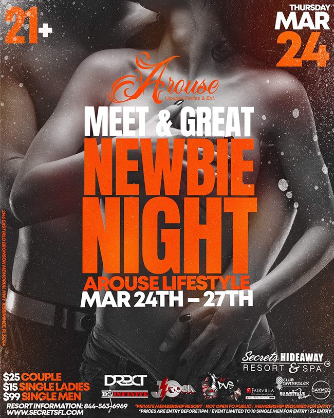 For only $45 per couple, you’ll receive a one-month membership to Secrets Hideaway Resort and Spa™, plus club entry to the hottest newbie night in the industry. Really ready to escape the mundane? Stay the night with us in one of our Modest Upgrade Exterior Condos for only $110. Grab a few new accessories at our on-site boutique, Fairavilla’s Sexy Things, and take a dip in our clothing-optional pool, or meet new friends in one of our indulgent hot tubs. Then, get ready to party in the recently updated Club Secret, complete with large dance floor, 5 stripper poles, comfy couches, and the most popular dance music. Really ready to explore the lifestyle? We offer multiple indoor playrooms where you can put on a show, meet new couples, visit our dungeon, and create your wildest fantasy! So, what are you waiting for? Join us on Thursday nights and get ready to create some secrets of your very own!