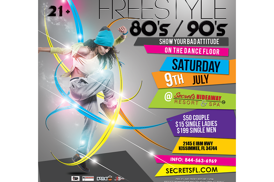 From the streets of New York, to the underground clubs of Miami, Freestyle music revolutionized the music scene in the late 80’s & early 90’s. Now, this high energy dance style comes to Club Secret as we celebrate all things retro at this Saturday night theme party! Join us at Secrets Hideaway and throw back to the era of Freestyle, with the hottest 80’s / 90’s dance music, professional DJ and light show, and tons of sexy friends to help get you in a nostalgic mood. Get ready to relive a time of wild colors and over-the-top fashion as we party the night away with hard beats, cold drinks, and lots of naughty secrets to be made!