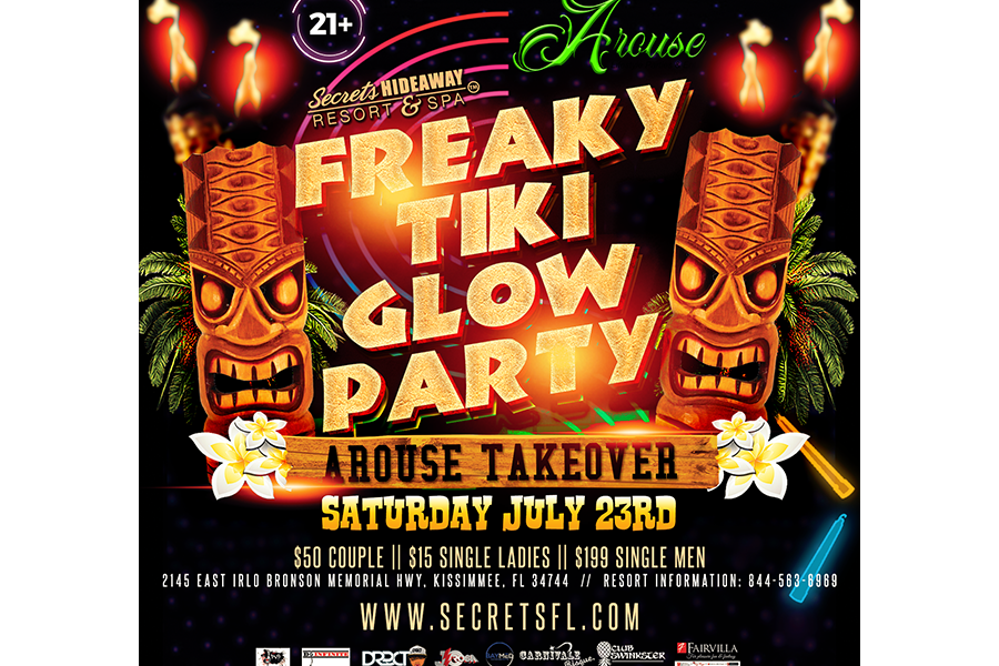 Saturday July 23rd, get ready for a spooky Hawaiian Luau that you won’t soon forget. Arouse Lifestyle Parties and Secrets Hideaway Resort & Spa™ bring you The Arouse Freaky Tiki Glow Party. But first start off pool side with good friends, good food and some ice-cold adult beverages. Join in on some of the wildest contest and games you can imagine or just set back and enjoy. After soaking up that Florida sun get ready to get your glow on! Join Arouse inside the infamous Club Secret® for the one and only Arouse Freaky Tiki Glow Party along with the hottest entertainment you can imagine!
