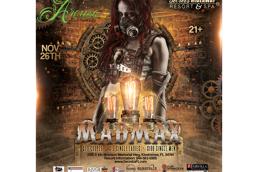 Saturday, November 25th Arouse Lifestyle Parties and Secrets Hideaway Resort & Spa™ bring you The Arouse Mad Max Party. But first, start off pool side with good friends, good food and some ice-cold adult beverages. Join in on some of the wild contest and games or just set back and enjoy. After soaking up the sun check out live music from rock band Twin Rova! Afterwards come join Arouse inside Club Secret® for the ultimate night club experience and entertainment.