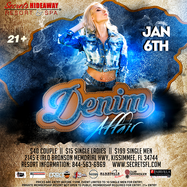 Whether cut off or skin tight, denim is one of the sexiest fabrics of our lives. But just how sexy can denim really be? Defy expectations tonight at Club Secret® as we rock one of the most All-American themes of all time! We know denim is sexy, now let’s see you work it as you get ready to make some naughty new secrets tonight at Secrets Hideaway™!