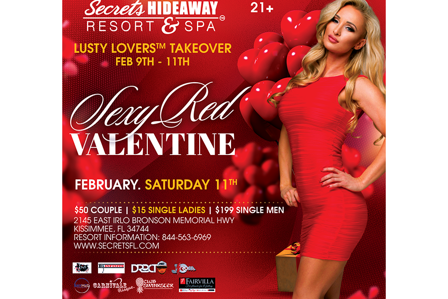 It’s the sexiest weekend of the year and Secrets Hideaway Resort and Spa™ is ready to celebrate sensuality with our Valentine’s Takeover! Secrets Hideaway™ is your secret Valentine’s escape, so stay the weekend and experience a signature sexiness like no other. Saturday night, the party will be Red-Hot, so dress to impress in your sexiest red attire! The party goes all night, with couple’s contests, sexy give-aways, and plenty of drinks from our two full-service bars. With a large dance floor, fully-equipped playrooms and more, get ready to experience pure ecstasy at the most sensual resort in the US!