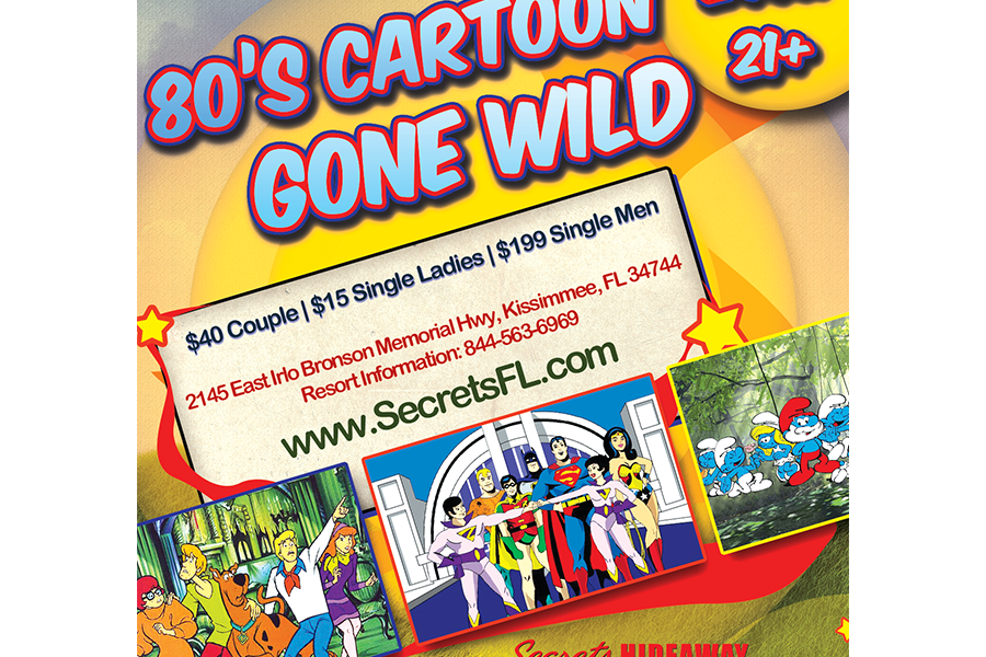 Friday, February 24th Arouse Lifestyle Parties and Secrets Hideaway Resort & Spa® bring you The Mrs. Arouse Birthday Bash starting off with The Arouse 80’s Cartoons Gone Wild Party. Start off your Friday poolside with music, food and some adult beverages. There will be plenty of entertainment and adult oriented contest, games and prizes to keep the fun going. Then you can keep the party going poolside or make your way into Club Secret® for the theme party and entertainment Arouse is known for!