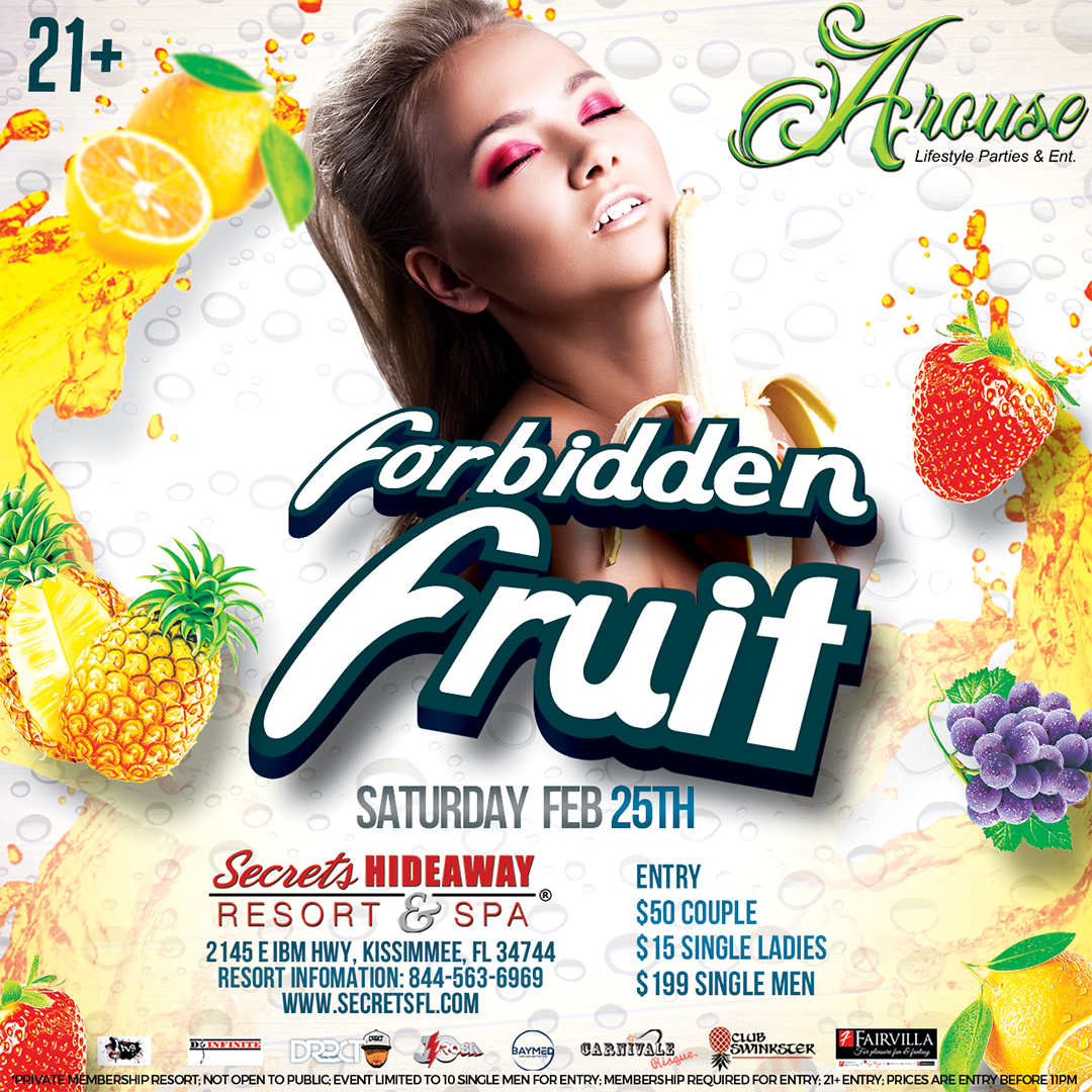 Saturday, February 25th Arouse Lifestyle Parties and Secrets Hideaway Resort & Spa® bring you The Mrs. Arouse Birthday Bash starting off with The Arouse Forbidden Fruit Party. But first start off pool side with good friends, good food and some ice-cold adult beverages. Join in on some of the wild contest and games or just set back and enjoy. After soaking up the Florida sun pull out those sweet costumes and come join Arouse inside Club Secret® for the ultimate entertainment and dance the night away!
