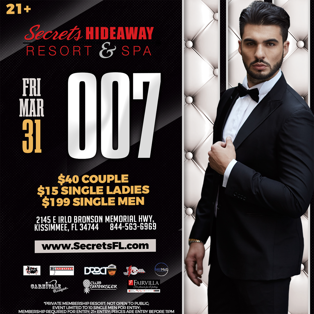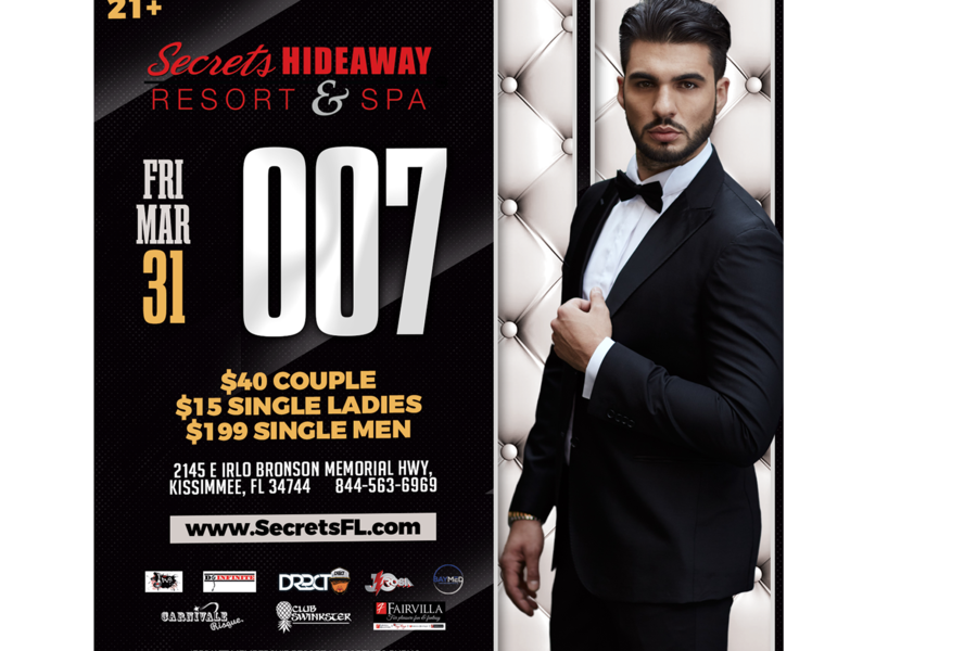 His Majesty’s Secret Service has requested the presence of all secret agents. Your mission… should you choose to accept it is to attend the “007” party at Secrets Hideaway™. Even if you like your martini shaken and not stirred this mission isn’t “For Your Eyes Only.” Who’s your favorite Bond? Is it the ever-sexy Sean Connery, or are you more of a Daniel Craig admirer? Make sure you dress in the best Bond attire from your favorite movie. We know everyone’s “Golden Eye” will be on those sexy Bond girls. You don’t want to miss this event.