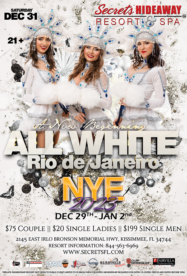 Tonight, Secrets Hideaway brings a tradition all the way from Rio de Janeiro! Brazilians will celebrate New Year’s Eve night dressed in white from head to toe, as this is seen as good luck for the next year. Gather your whitest sexy wear and come celebrate the end of 2022 in epic, Rio style! Dazzle your friends on the dance floor as our DJ spins the hottest music all night long. Sip cocktails in one of our glamorous VIP areas while you celebrate the end of one amazing year and the beginning of an even more fabulous one. Come party and play in grandiose style with all your most exciting friends as we twinkle the night away at Club Secret®!