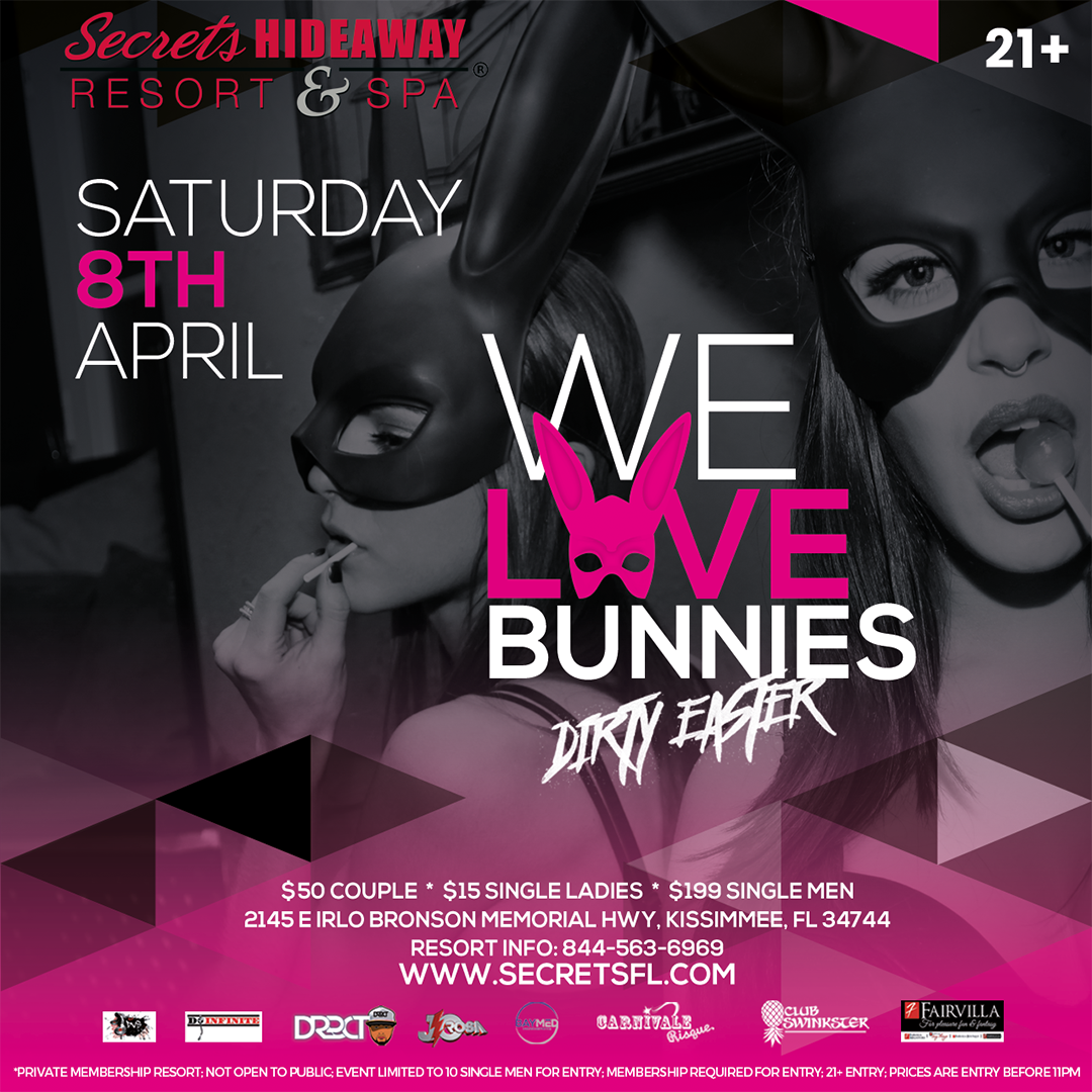 Hippity Hop on over to Secrets Hideaway™ for a Dirty Easter party like no other. Forget the peeps and sticky sweet candy, tonight we want to see you get nasty. Ears and tails are in order as all the bad bunnies come out to play in this spring-inspired celebration. Don’t miss out on the sexiest Easter party of the season as we explore what it means to be a bad bunny!
