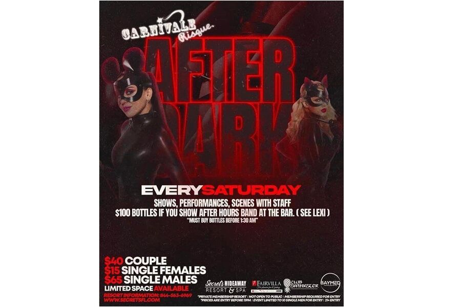 It’s 2:00am and the party's just getting started in Club Swinskter. Indulge yourself in Carnivale Risque's AFTER DARK party where you can experience delicious pop-ups, shows, and exclusivity. This She-Bang is where you can party with the staff as the Carnivale Risque crew tantalize and tease your senses with the enigmatic world of kink. The staff’s playfulness will provide an atmosphere full of sexy and sensual fun that cannot be experienced anywhere else. Let Carnivale Risque take you on an adventure of delicious debauchery and tasteful taboos. Join us AFTER DARK inside Club Swinskter and slide down the rabbit whole for an experience that you will always remember and can't get anywhere else.