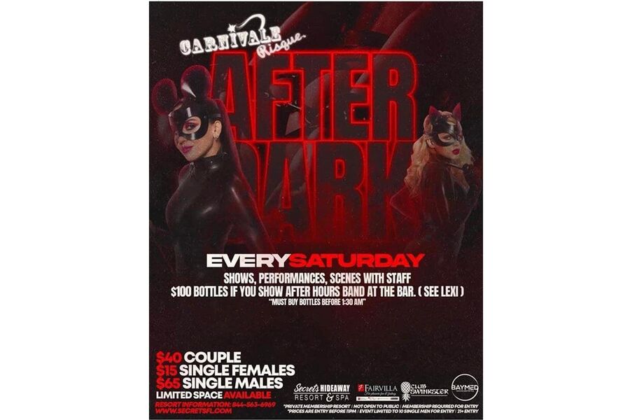 It’s 2:00am and the party's just getting started in Club Swinskter. Indulge yourself in Carnivale Risque's AFTER DARK party where you can experience delicious pop-ups, shows, and exclusivity. This She-Bang is where you can party with the staff as the Carnivale Risque crew tantalize and tease your senses with the enigmatic world of kink. The staff’s playfulness will provide an atmosphere full of sexy and sensual fun that cannot be experienced anywhere else. Let Carnivale Risque take you on an adventure of delicious debauchery and tasteful taboos. Join us AFTER DARK inside Club Swinskter and slide down the rabbit whole for an experience that you will always remember and can't get anywhere else.