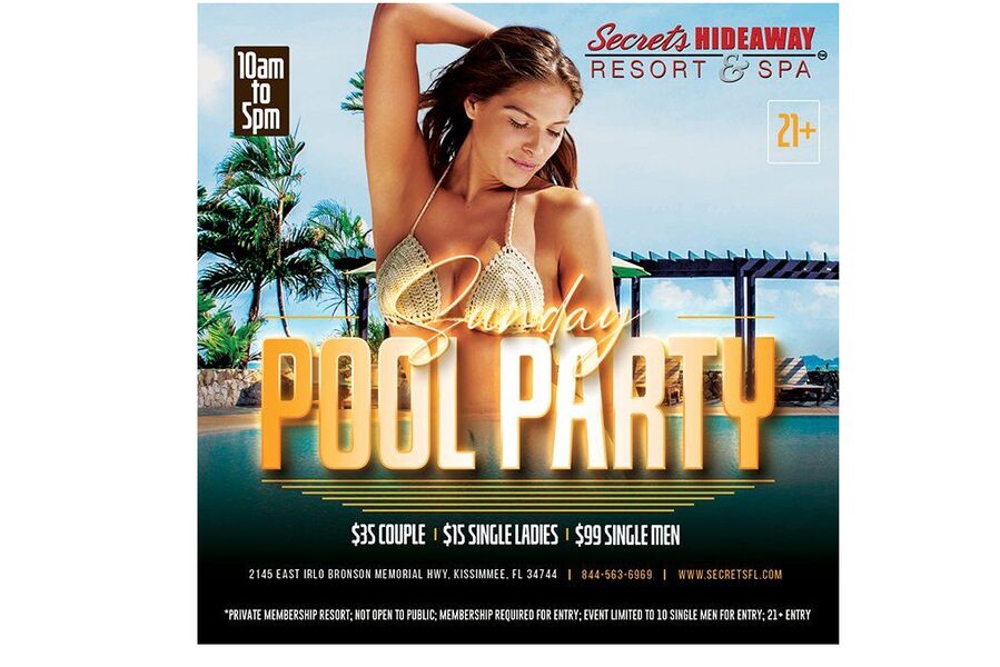 Let loose and spend the evening with us for an epic way to end your sexiest weekends. With two tiki bars serving your favorite cocktails and a full lunch menu, you’ll have plenty to keep you fueled as you spend Sunday Funday at the sexiest clothing-optional pool party in Kissimmee!