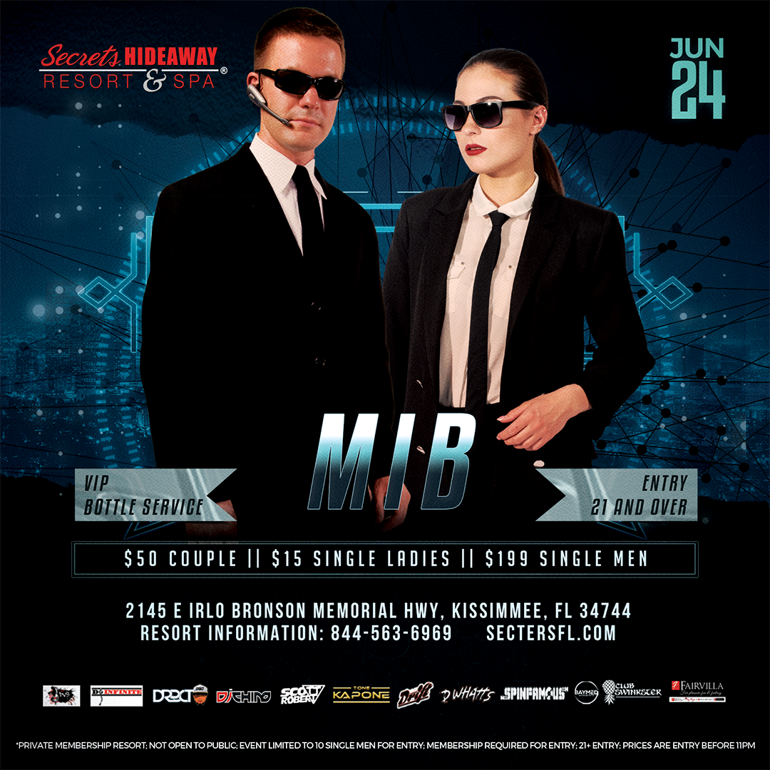 Tonight, Secrets Hideaway™ is hosting an “intergalactic kegger.” It’s time to put on “the last suit you’ll ever wear.” That’s right we are talking “Men in Black”. MIB is looking for new agents to help save the planet from sexy intergalactic invaders. You don’t want to miss this EPIC event.