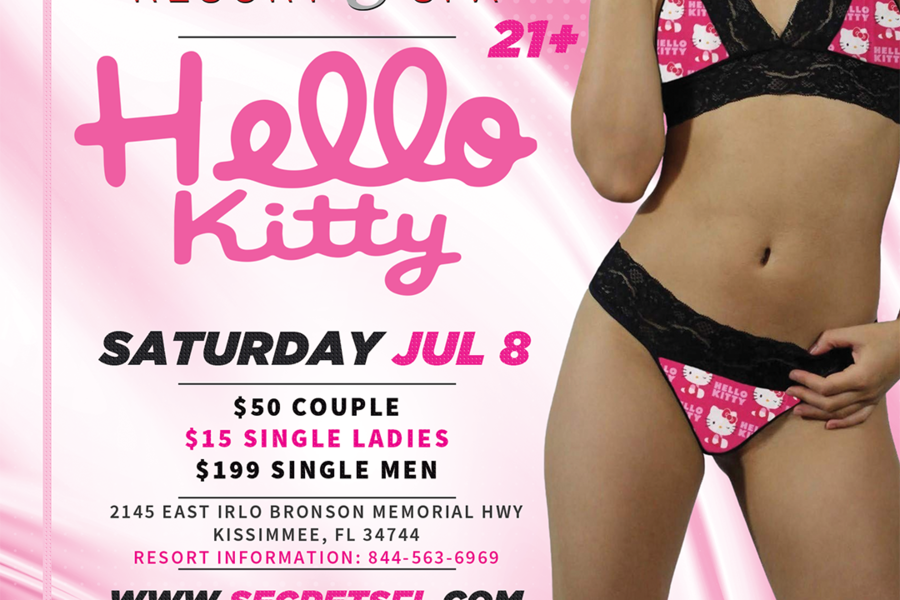 Tonight, Secrets Hideaway™ is combining cute with sexy and throwing a cute and sexy Hello Kitty Party. Ladies AND gentlemen, can have fun by dressing up for this theme. Let’s see how sexy you can make Hello Kitty. This will be a night to remember!!!