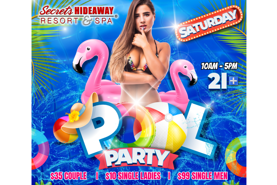 At the Saturday Pool Party, the atmosphere is charged with an electrifying blend of sensuality and sunshine. For those seeking the ultimate in luxury and privacy, reserving a pool-side cabana offers eight hours of opulent relaxation, where you can bask in the sun-kissed ambiance and indulge in arousing fun. Alternatively, slip away to the inviting playrooms, where you can create your own heat and explore the depths of your desires. Whether you're lounging in luxury, dancing under the open sky, or discovering the intimate corners of Secrets Hideaway, the Saturday Pool Party promises a day of unbounded pleasure, liberating experiences, and unforgettable connections with like-minded souls. Dive into the weekend with a splash of excitement, celebrating summer in the sexiest, most enticing way imaginable.
