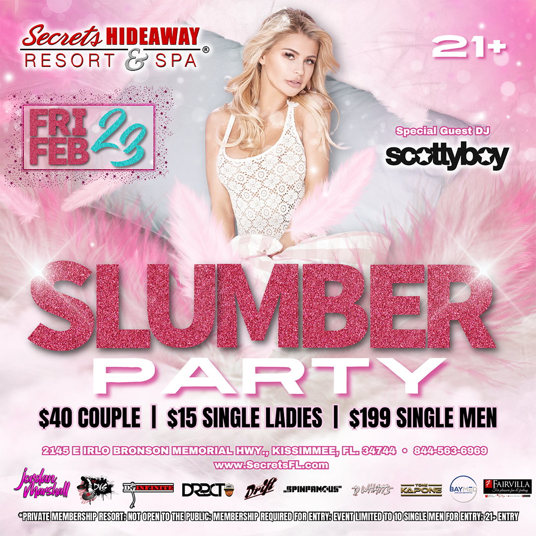 All the parties are located at Secrets Hideaway Resort & Spa®. For reservations: Visit our reservations page Click here for Reservations , call 844-563-6969 or book by clicking the Red "Book a Room" button at the top of each event page.