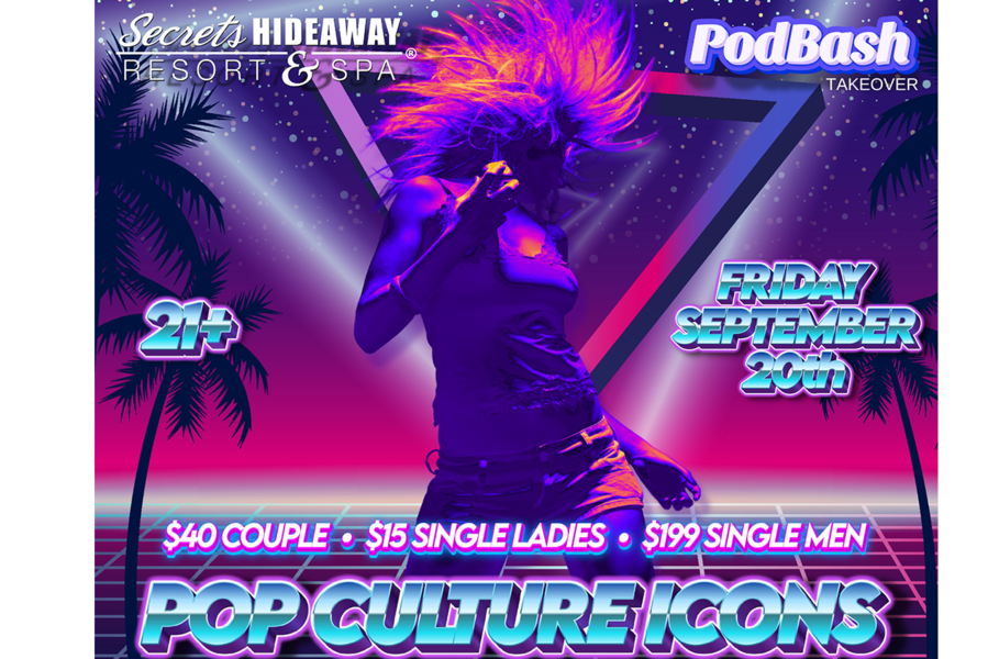 Prepare for a night of iconic celebration as PodBash presents the "Pop Culture Icons" event on September 20th at Secrets Hideaway. Delve into a world where the legends of pop culture come to life, inviting attendees to embody their favorite characters, musicians, actors, and symbols of cultural significance. Whether you're channeling the suave sophistication of James Bond, the captivating allure of Marilyn Monroe, or paying homage to your favorite superhero, this event promises a kaleidoscope of creativity and homage to the figures that have shaped our collective imagination.