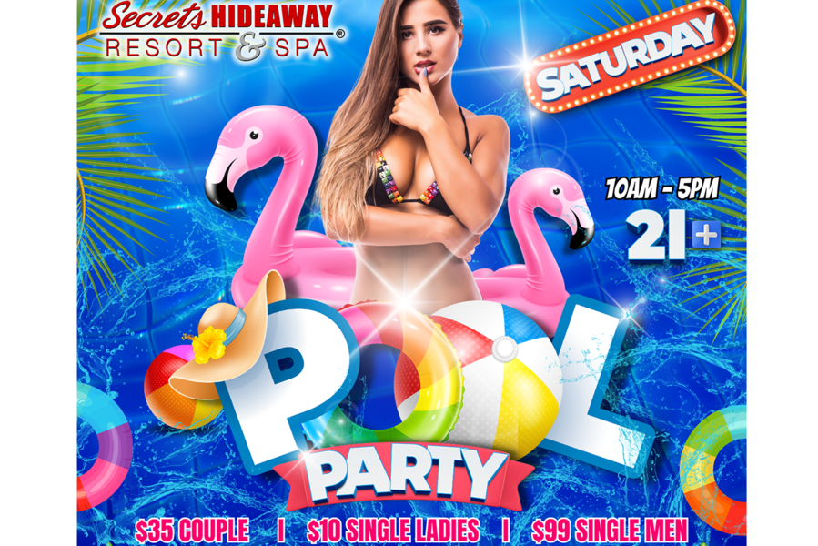 At the Saturday Pool Party, the atmosphere is charged with an electrifying blend of sensuality and sunshine. For those seeking the ultimate in luxury and privacy, reserving a pool-side cabana offers eight hours of opulent relaxation, where you can bask in the sun-kissed ambiance and indulge in arousing fun. Alternatively, slip away to the inviting playrooms, where you can create your own heat and explore the depths of your desires. Whether you're lounging in luxury, dancing under the open sky, or discovering the intimate corners of Secrets Hideaway, the Saturday Pool Party promises a day of unbounded pleasure, liberating experiences, and unforgettable connections with like-minded souls. Dive into the weekend with a splash of excitement, celebrating summer in the sexiest, most enticing way imaginable.