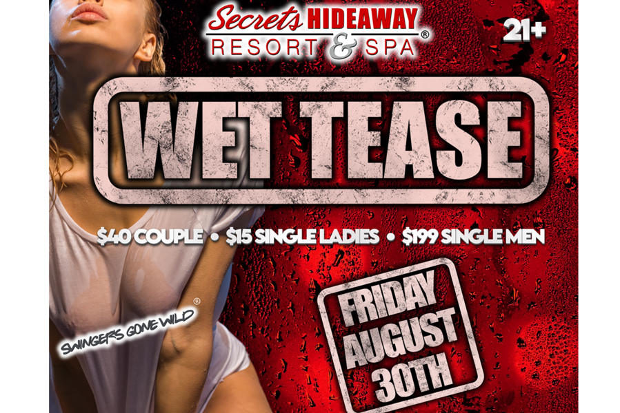 As the night unfolds, immerse yourself in the electrifying atmosphere of the lifestyle community, where inhibitions are left at the door and passions run wild. Whether you're admiring the enticing sights, engaging in flirtatious encounters, or exploring new realms of pleasure, the "Wet Tease" event offers an unforgettable journey into the realms of eroticism and sensuality. Join us on August 30th for an evening of wet and wild fun that will leave you tantalized and eager for more at Secrets Hideaway.