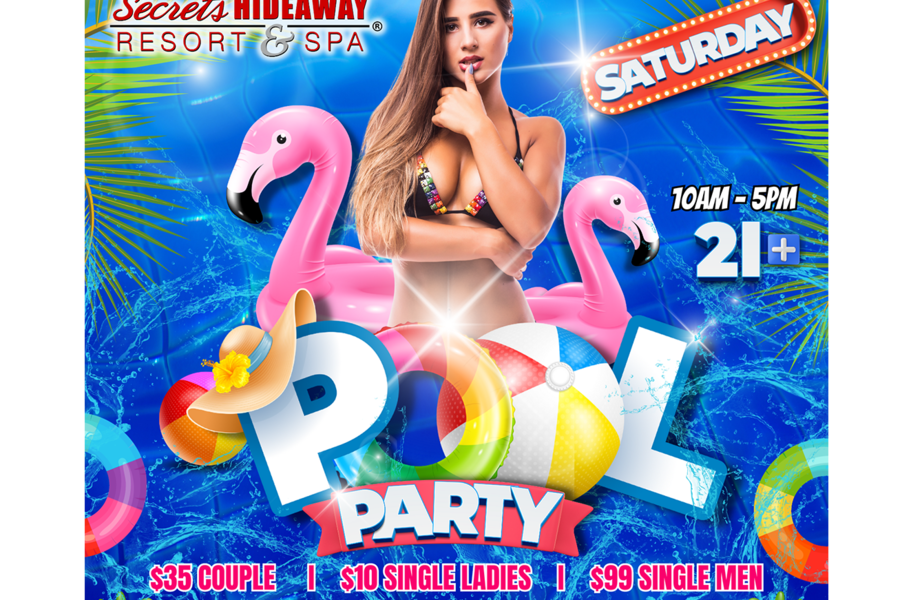 At the Saturday Pool Party, the atmosphere is charged with an electrifying blend of sensuality and sunshine. For those seeking the ultimate in luxury and privacy, reserving a pool-side cabana offers eight hours of opulent relaxation, where you can bask in the sun-kissed ambiance and indulge in arousing fun. Alternatively, slip away to the inviting playrooms, where you can create your own heat and explore the depths of your desires. Whether you're lounging in luxury, dancing under the open sky, or discovering the intimate corners of Secrets Hideaway, the Saturday Pool Party promises a day of unbounded pleasure, liberating experiences, and unforgettable connections with like-minded souls. Dive into the weekend with a splash of excitement, celebrating summer in the sexiest, most enticing way imaginable.