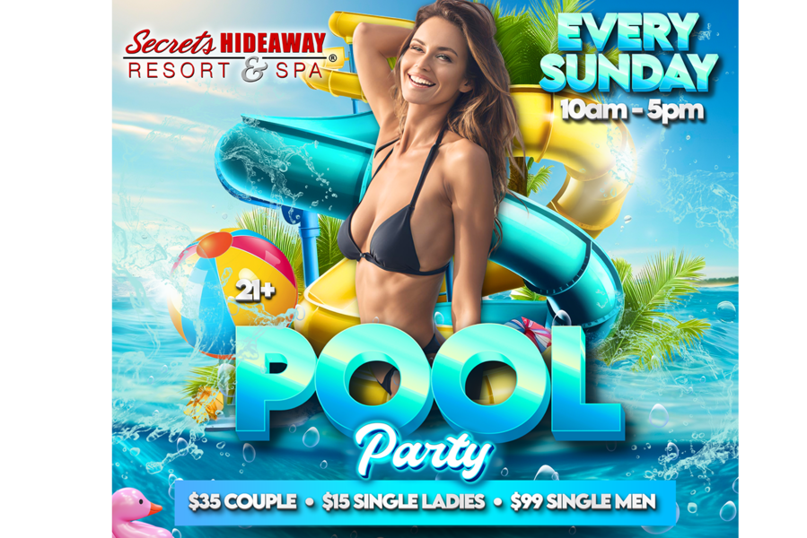 At the Sunday Pool Party, the atmosphere is a delightful blend of leisure and excitement. Meet new friends, catch up with your loved ones, and relish in the freedom of being your authentic self. For those seeking the epitome of comfort and privacy, reserving your own cabana elevates your experience. Complete with power outlets, soft lighting, curtains, and a ceiling fan, these cabanas offer a sanctuary where you can unwind, connect, and create unforgettable memories. Sundays are redefined at Secrets Hideaway as you spend the day just the way you've always dreamed – immersed in sunshine, surrounded by good company, and embracing the sheer freedom of being yourself. It's the perfect way to wrap up your weekend, setting the tone for a fresh, positive start to the week ahead.