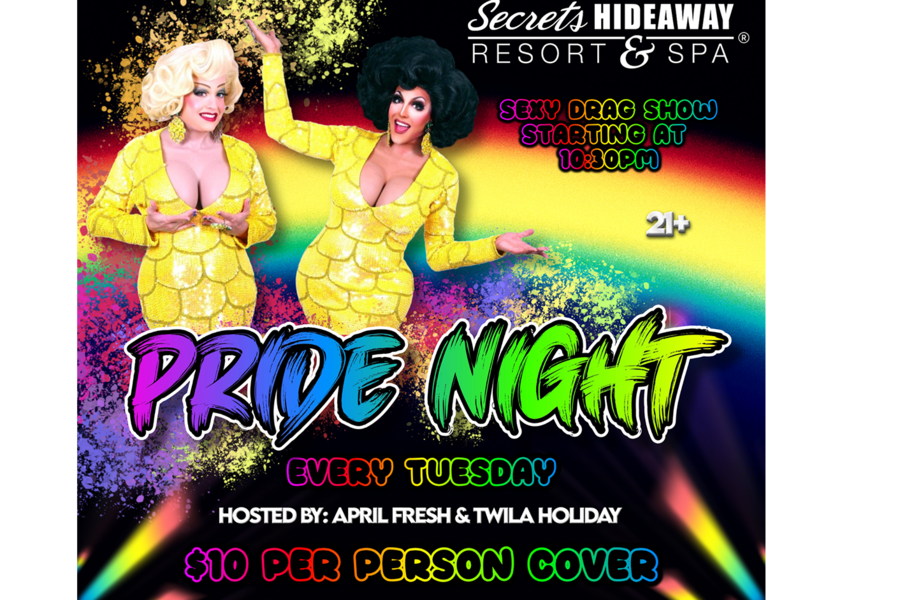 Secrets Hideaway Pride Night is not just a party; it's a declaration of love, acceptance, and the freedom to be who you are. The event will be filled with vibrant energy, dazzling lights, and an ambiance of acceptance and unity. As the clock strikes 10:30pm, the Sexy Drag Show will kick off, showcasing the incredible talent and creativity of drag artists, leaving the audience in awe. This event provides a safe and welcoming space for everyone, regardless of gender identity or sexual orientation, to come together, celebrate diversity, and embrace the power of love. With Twila Holiday and April Fresh as your hosts, prepare for an unforgettable night of pride, empowerment, and a whole lot of fabulousness that will leave you inspired and uplifted.