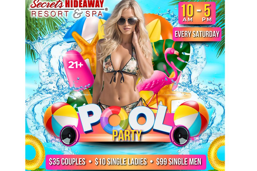 At the Saturday Pool Party, the atmosphere is charged with an electrifying blend of sensuality and sunshine. For those seeking the ultimate in luxury and privacy, reserving a pool-side cabana offers eight hours of opulent relaxation, where you can bask in the sun-kissed ambiance and indulge in arousing fun. Alternatively, slip away to the inviting playrooms, where you can create your own heat and explore the depths of your desires. Whether you're lounging in luxury, dancing under the open sky, or discovering the intimate corners of Secrets Hideaway, the Saturday Pool Party promises a day of unbounded pleasure, liberating experiences, and unforgettable connections with like-minded souls. Dive into the weekend with a splash of excitement, celebrating summer in the sexiest, most enticing way imaginable.