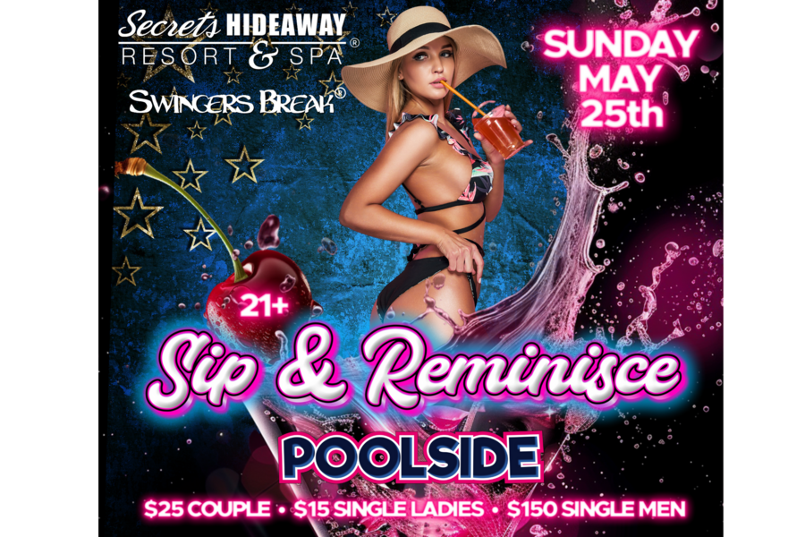 Extend the weekend bliss and dive into an evening of sheer indulgence at Sip & Reminisce Poolside, held every Sunday night at Secrets Hideaway. Gather your friends and let the fun continue as you embrace the laid-back ambiance of our clothing-optional oasis. Whether you prefer to dress to the nines or keep it casual, the choice is entirely yours at this liberating event. Picture yourself poolside, surrounded by the hottest beats, the iciest drinks, and the sexiest company. Sip & Reminisce offers more than just a relaxing evening by the pool; it's an invitation to free your inhibitions and explore your deepest desires in the company of like-minded friends.
