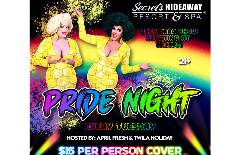 Secrets Hideaway Pride Night is not just a party; it's a declaration of love, acceptance, and the freedom to be who you are. The event will be filled with vibrant energy, dazzling lights, and an ambiance of acceptance and unity. As the clock strikes 10:30pm, the Sexy Drag Show will kick off, showcasing the incredible talent and creativity of drag artists, leaving the audience in awe. This event provides a safe and welcoming space for everyone, regardless of gender identity or sexual orientation, to come together, celebrate diversity, and embrace the power of love. With Twila Holiday and April Fresh as your hosts, prepare for an unforgettable night of pride, empowerment, and a whole lot of fabulousness that will leave you inspired and uplifted.
