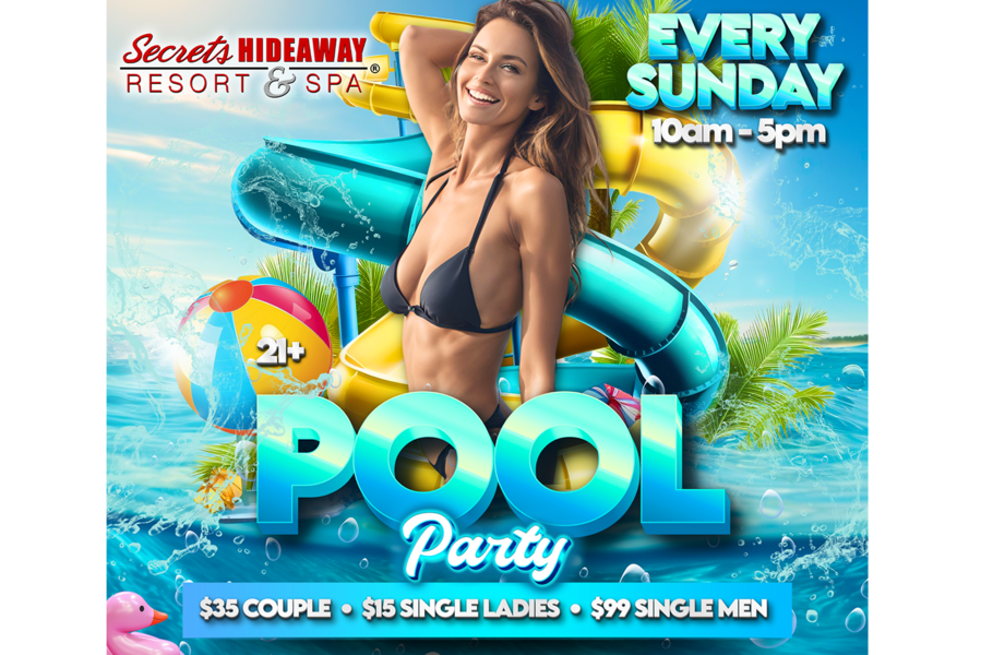 At the Sunday Pool Party, the atmosphere is a delightful blend of leisure and excitement. Meet new friends, catch up with your loved ones, and relish in the freedom of being your authentic self. For those seeking the epitome of comfort and privacy, reserving your own cabana elevates your experience. Complete with power outlets, soft lighting, curtains, and a ceiling fan, these cabanas offer a sanctuary where you can unwind, connect, and create unforgettable memories. Sundays are redefined at Secrets Hideaway as you spend the day just the way you've always dreamed – immersed in sunshine, surrounded by good company, and embracing the sheer freedom of being yourself. It's the perfect way to wrap up your weekend, setting the tone for a fresh, positive start to the week ahead.