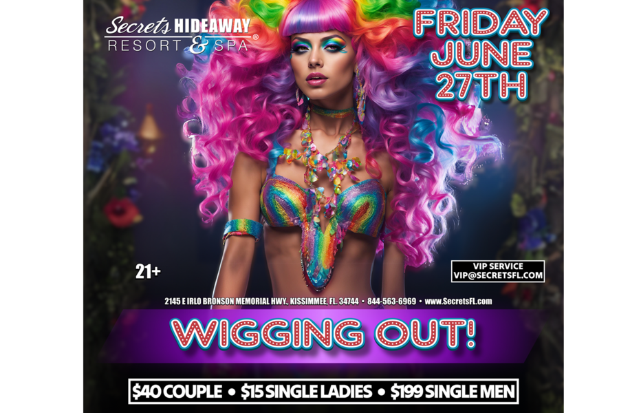 Secrets Hideaway presents "Wigging Out" on Friday, June 27th, an electrifying event where your most vibrant, eye-catching wigs steal the show! Whether you favor bold neon colors, wild curls, or sleek bobs, this is the night to embrace your playful side and show off your most daring wig-wearing style. Step into a realm of larger-than-life hair and let your imagination run wild as you dance under flashing lights, mingle with fellow wig enthusiasts, and discover how a simple change in hair can spark a whole new level of excitement.
