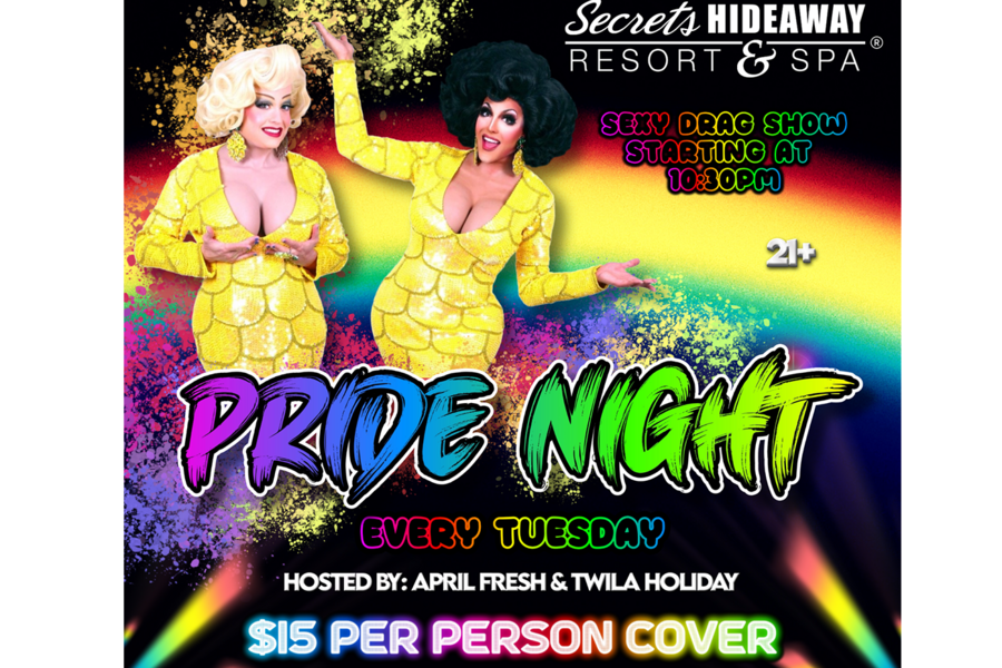 Secrets Hideaway Pride Night is not just a party; it's a declaration of love, acceptance, and the freedom to be who you are. The event will be filled with vibrant energy, dazzling lights, and an ambiance of acceptance and unity. As the clock strikes 10:30pm, the Sexy Drag Show will kick off, showcasing the incredible talent and creativity of drag artists, leaving the audience in awe. This event provides a safe and welcoming space for everyone, regardless of gender identity or sexual orientation, to come together, celebrate diversity, and embrace the power of love. With Twila Holiday and April Fresh as your hosts, prepare for an unforgettable night of pride, empowerment, and a whole lot of fabulousness that will leave you inspired and uplifted.