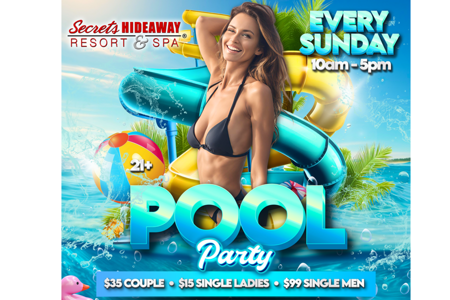 At the Sunday Pool Party, the atmosphere is a delightful blend of leisure and excitement. Meet new friends, catch up with your loved ones, and relish in the freedom of being your authentic self. For those seeking the epitome of comfort and privacy, reserving your own cabana elevates your experience. Complete with power outlets, soft lighting, curtains, and a ceiling fan, these cabanas offer a sanctuary where you can unwind, connect, and create unforgettable memories. Sundays are redefined at Secrets Hideaway as you spend the day just the way you've always dreamed – immersed in sunshine, surrounded by good company, and embracing the sheer freedom of being yourself. It's the perfect way to wrap up your weekend, setting the tone for a fresh, positive start to the week ahead.