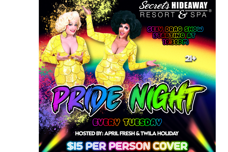 Secrets Hideaway Pride Night is not just a party; it's a declaration of love, acceptance, and the freedom to be who you are. The event will be filled with vibrant energy, dazzling lights, and an ambiance of acceptance and unity. As the clock strikes 10:30pm, the Sexy Drag Show will kick off, showcasing the incredible talent and creativity of drag artists, leaving the audience in awe. This event provides a safe and welcoming space for everyone, regardless of gender identity or sexual orientation, to come together, celebrate diversity, and embrace the power of love. With Twila Holiday and April Fresh as your hosts, prepare for an unforgettable night of pride, empowerment, and a whole lot of fabulousness that will leave you inspired and uplifted.