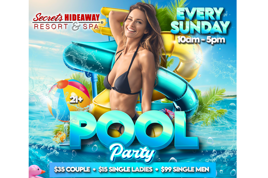 At the Sunday Pool Party, the atmosphere is a delightful blend of leisure and excitement. Meet new friends, catch up with your loved ones, and relish in the freedom of being your authentic self. For those seeking the epitome of comfort and privacy, reserving your own cabana elevates your experience. Complete with power outlets, soft lighting, curtains, and a ceiling fan, these cabanas offer a sanctuary where you can unwind, connect, and create unforgettable memories. Sundays are redefined at Secrets Hideaway as you spend the day just the way you've always dreamed – immersed in sunshine, surrounded by good company, and embracing the sheer freedom of being yourself. It's the perfect way to wrap up your weekend, setting the tone for a fresh, positive start to the week ahead.